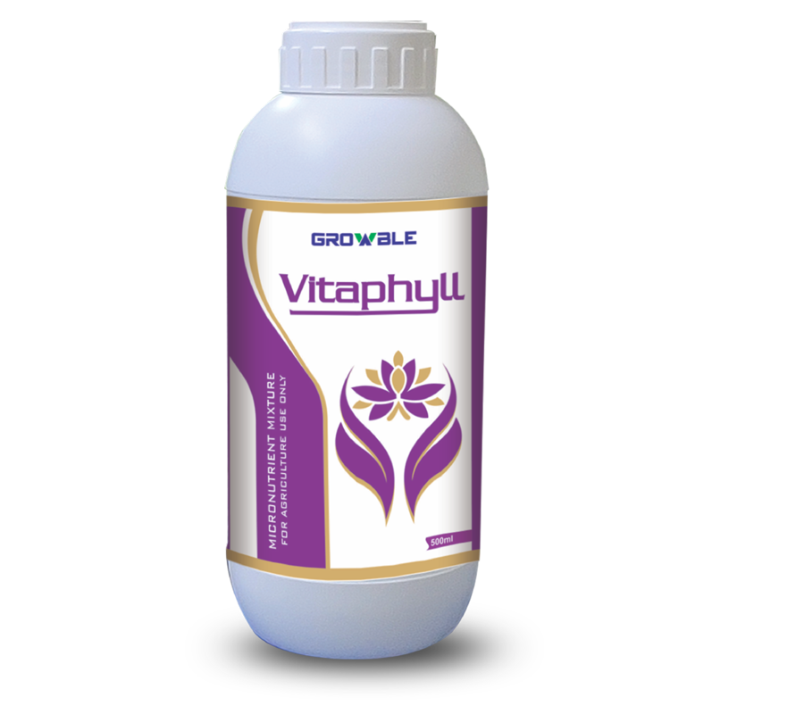 Read MoreMost Important role of micronutrients present in Vitaphyll : Manganese (Mn) functions primarily as part of enzyme systems in plants. It activates several important metabolic reactions and plays a direct role in photosynthesis.Manganese accelerates germination and maturity while increasing the availability of phosphorus (P) and calcium (Ca). Manganese plays a vital role in photosynthesis by aiding in chlorophyll synthesis. Zn is required in small amounts, high yields are impossible without it. Protein synthesis and growth regulation require Zn. Boron (B) is a micronutrient that is essential for cell wall formation and rapid growing points within the plant, such as reproductive structures. boron is a component of all cell walls in the plant. Boron improves seed set under stressful conditions.Iron is a component of many enzymes associated with energy transfer, nitrogen reduction and fixation, and lignin formation.Iron is a catalyst to chlorophyll formation. Copper is necessary to chlorophyll formation in plants and catalyzes several other plant reactions. Plants require Mg to capture the sun's energy for growth and production through photosynthesis.